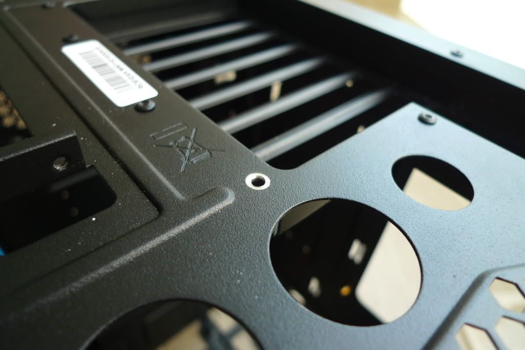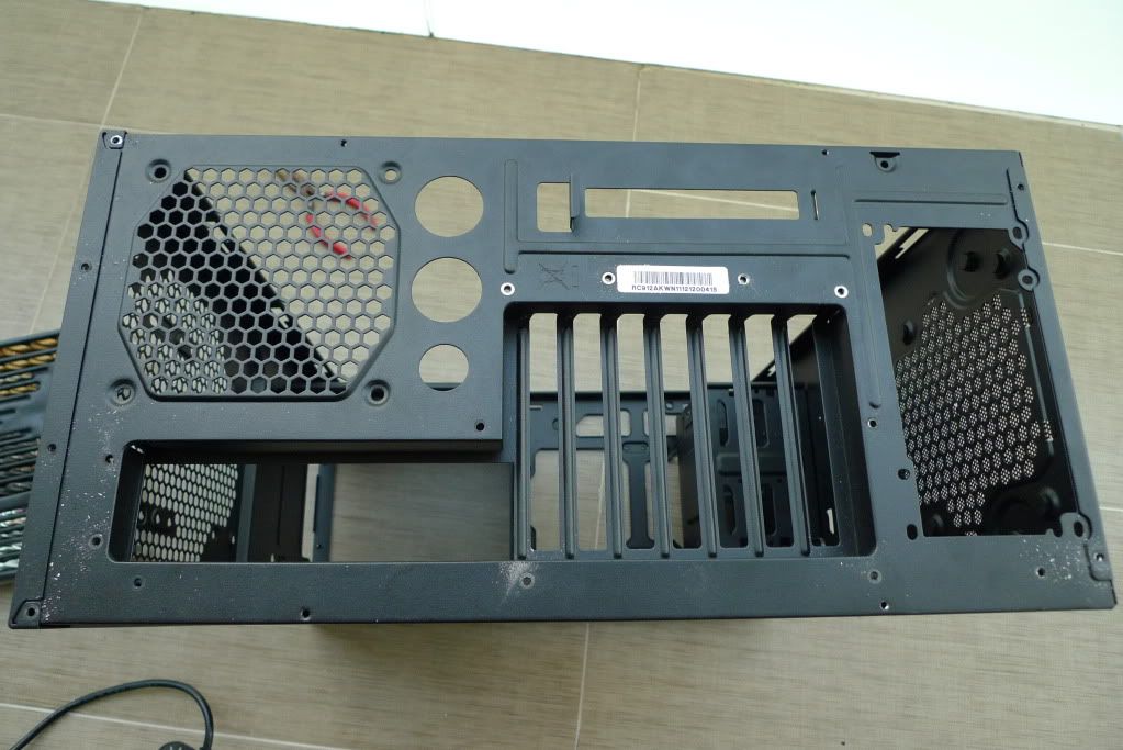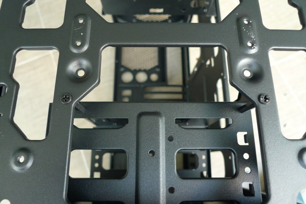 | Plastic holders for the 3.5" HDD cage is held down by rivets too |